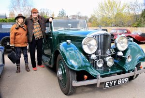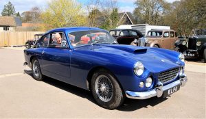 The show was complemented with a sleek, Royal Blue A.C. Greyhound from 1959 belonging to John Goofe, with Guy and Jan Rackham proudly displaying off their Derby built Rolls Royce Bentley, a prestigious silver, elite Caterham, and at least a further 15 resplendent vehicles arriving by lunchtime.