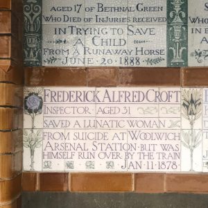 The memorial features plaques dedicated to London heroes who died saving the lives of others. For example, a servant called Alice Ayres, who died saving her employer’s children from a burning house – though she saved their lives, it was at the cost of her own. Or the youngest, Henry Bristow, only eight years old who died saving his sister from burning to death but caught fire himself in the process.