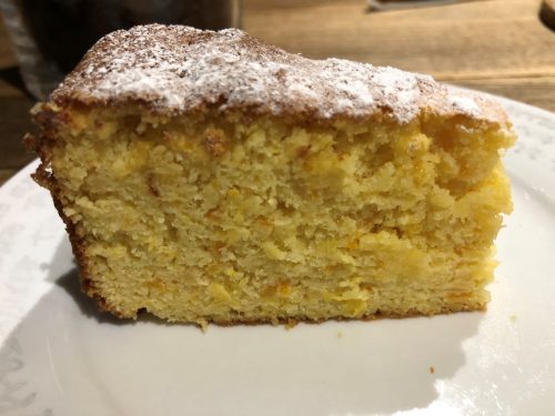 This month I would like to share with you one of my favourite recipes for orange cake. This is slightly unconventional in its preparation, but the resulting cake is a light and fluffy in texture and rich, almost marmalade-like in flavour. It yields appropriately 12 large sized portions and is delicious both hot and cold. One final note; if you use gluten-free baking powder then this cake is great for anyone who wishes to eat gluten free.