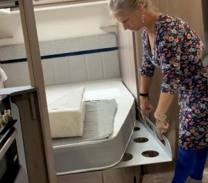 Having struggled with the shaped bed in her motorhome for some time, she decided to try and solve the problem. Nearly two years later, she has a UK patent for her newly invented product. The Straight2Sleep® bed extender is an ingenious, practical, and effective solution to the problems associated with a cut-off ‘French’ bed often found in a caravan or motorhome.