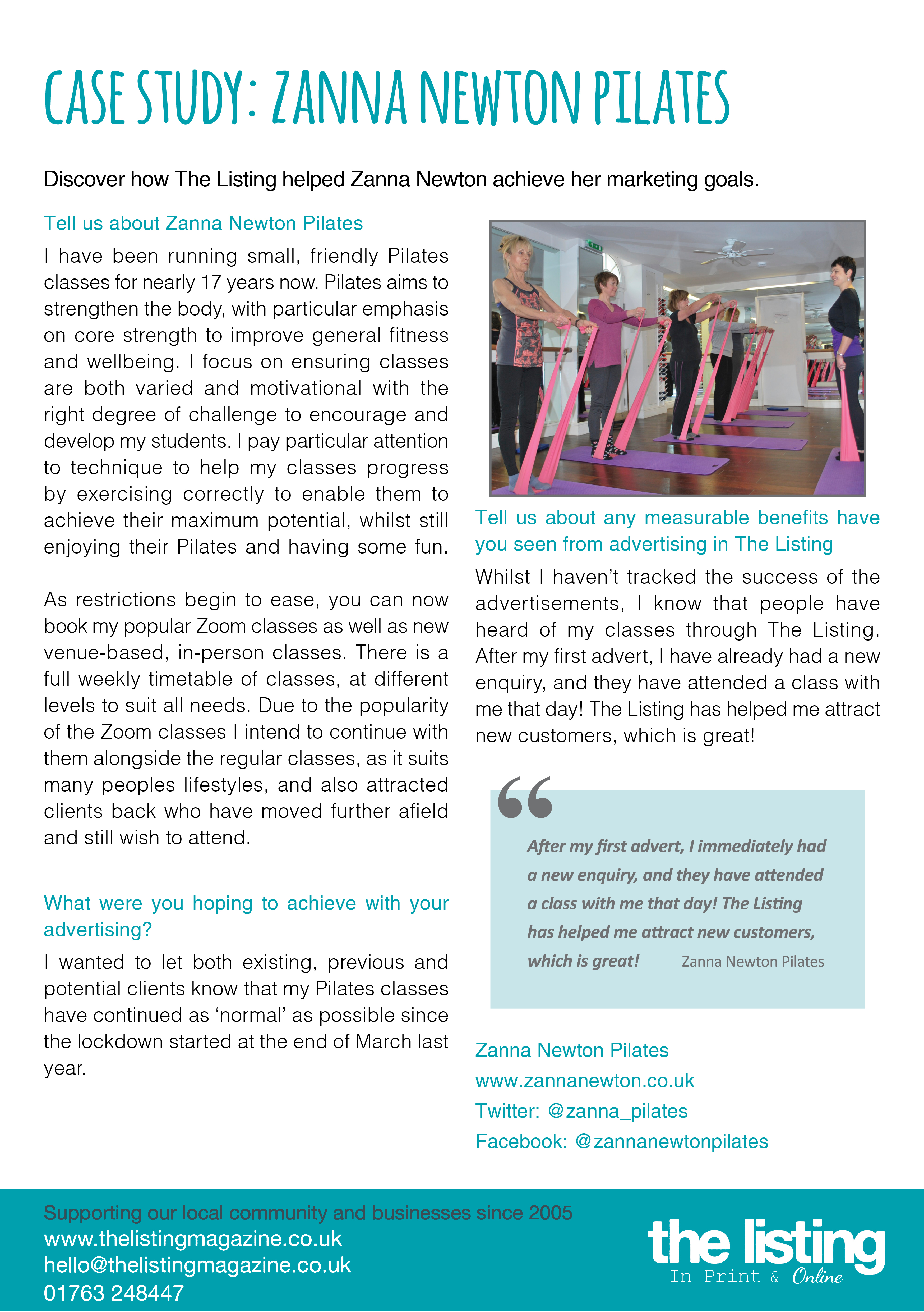 Click here to read the Zanna Newton Pilates Case Study, to find out how The Listing helped Zanna to attract new customers.
