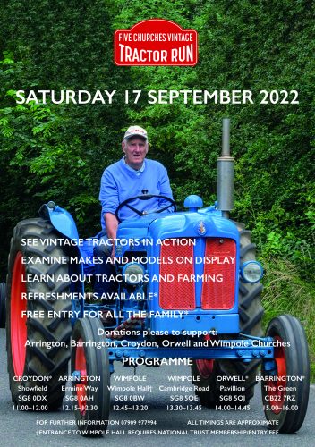 Widening the scope and format of the traditional tractor run will make this a great day out for all involved and raise valuable funds for; Arrington, Barrington, Croydon, Orwell and Wimpole Churches.